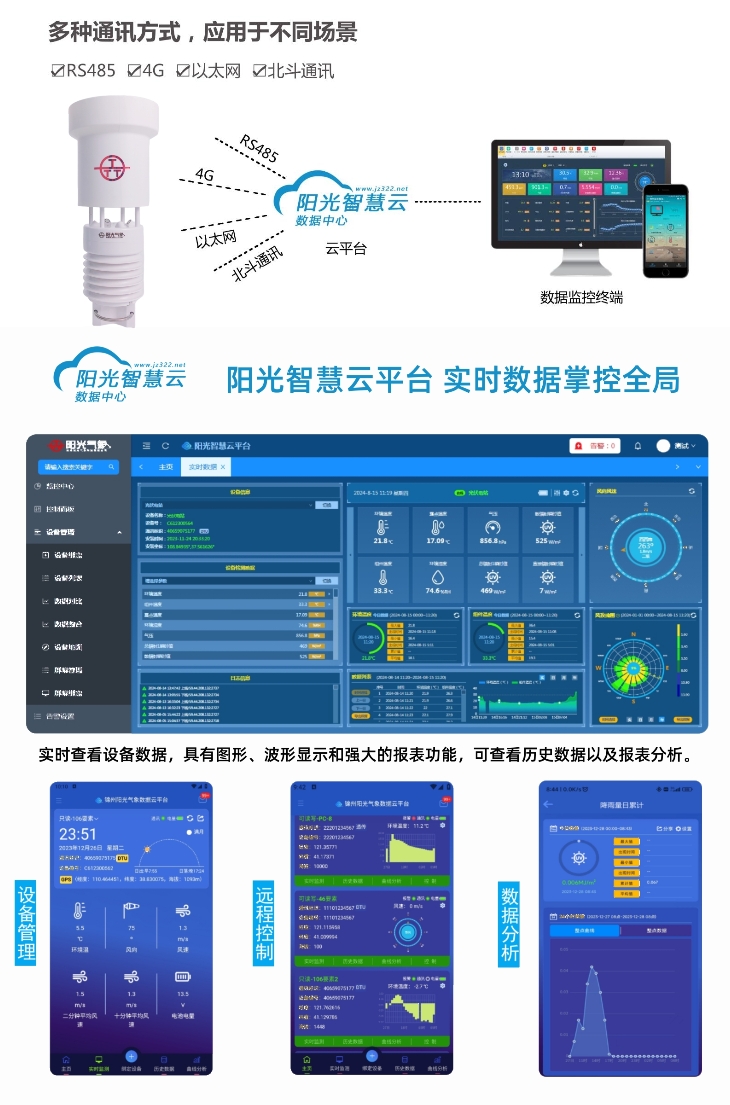 PC-8K氣象六參數(shù)環(huán)境監(jiān)測儀是我公司自主研制的一款測量多種氣象要素的一體化氣象站,可同時測量大氣溫度、大氣濕度、風速、風向、氣壓、雨量等主要氣象要素。其中雨量為高精度翻斗式雨量傳感器,其特點是精度高,響應速度快,串口輸出,方便用戶直接通過PC或外接儀器進行采集。