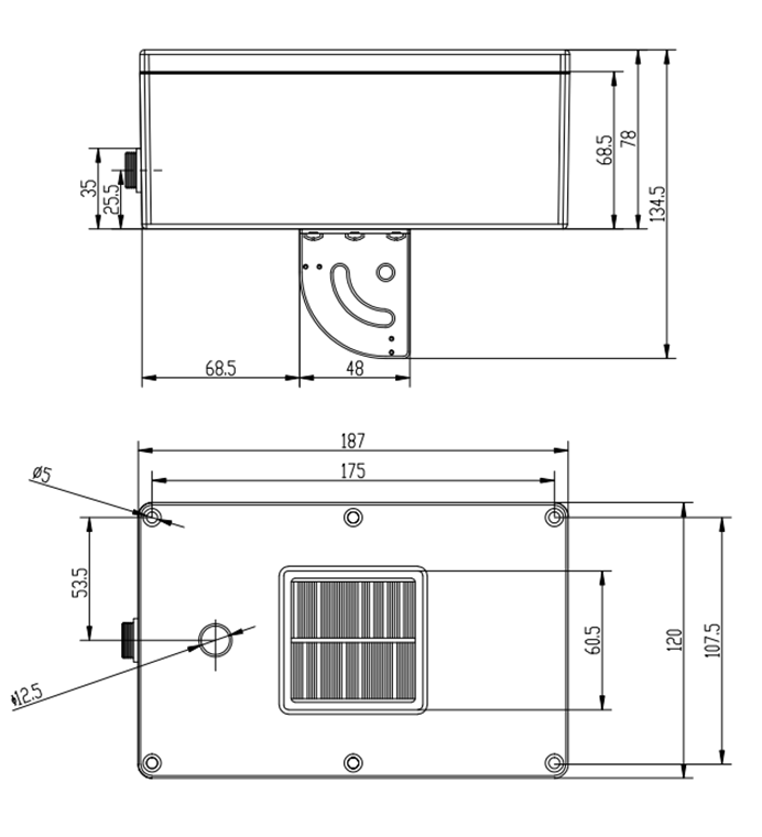 太陽(yáng)能電池片嵌入在醋酸乙烯酯中,層疊的電池集成到鋁涂層的小盒中。因此傳感器的結(jié)構(gòu)與標(biāo)準(zhǔn)的光伏組件模塊十分相似。線纜的接口是一個(gè)IP67 的防水接頭。安裝掛件角度可調(diào),使用時(shí)調(diào)節(jié)到與光伏組件角度一致即可。